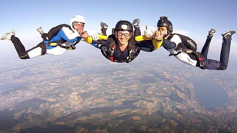 • Fallschirmsprung in Begleitung von 2 Instruktoren