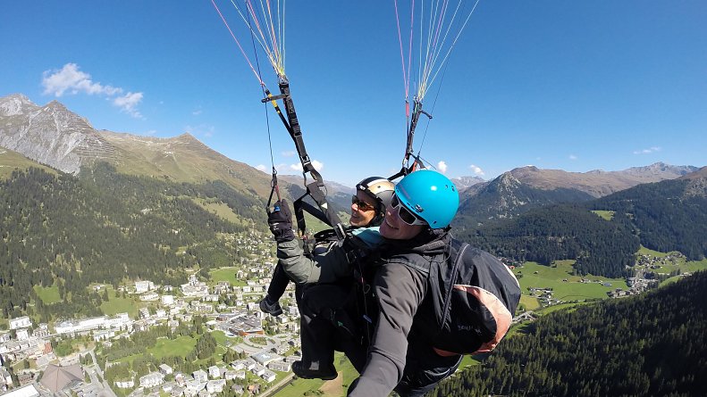Bei diesem Gleitschirm-Flug bleibt kein Wunsch offen. Mit der Bergbahn geht es hoch hinaus auf den Gipfel in der Region Davos, je nach Windverhältnissen Jakobshorn oder Parsenn. Schon dort ist die Aussicht auf Bergwelt, Täler, Wald und Wiese umwerfend. Der Pilot gibt Ihnen noch die letzten Instruktionen und dann kann das unvergessliche Abenteuer beginnen. Der Schirm öffnet sich und sie erklimmen schwerelos die Höhe. Unter Ihnen bietet sich ein unvergesslicher Ausblick auf die wunderschöne Welt, im Winter schneebedeckt, im Sommer bunt blühend. Kommen Sie mit auf diesen unvergesslichen Flug.